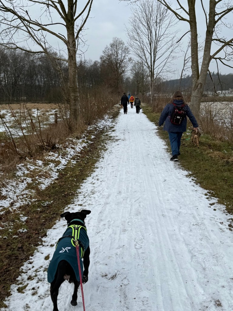 10 Hunde samt menschlichem Anhang rasten durchs Nienwohlder Mohr, begleitet von 2 Rangern. 9 km sind nun nicht so die große Distanz, mit unpassendem Schuhwerk können die aber echt lang werden. Ich werde mit meinen Wanderstiefeln einfach nicht warm. Versuche es seit 2 Jahren, aber bisher waren meine Mühen leider nicht von Erfolg gekrönt 🤷♀️ Schade ums Geld, aber bei zukünftigen Wanderungen tue ich mir da echt keinen Gefallen. Am Ende ist der Jakobsweg schon beim Aussteigen aus dem Zug in Swinemünde beendet weil mir alles weh tut 😱 Da macht die Aussicht auf 500 km zu Fuß irgendwie auch keinen Spaß.