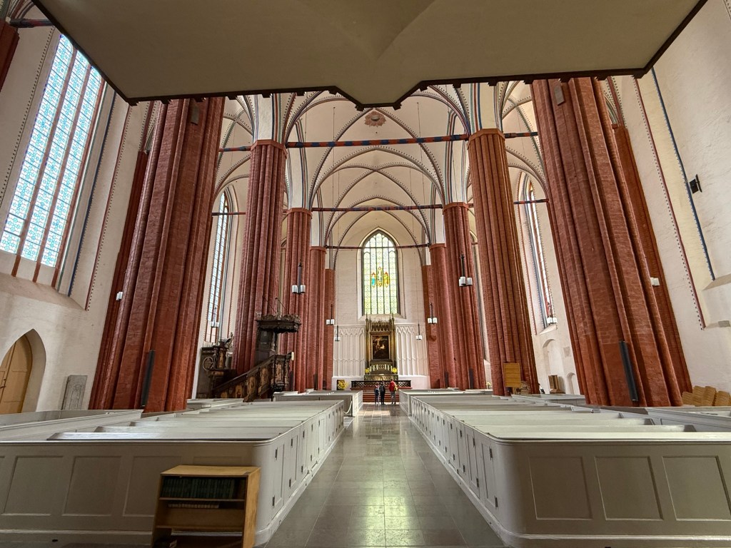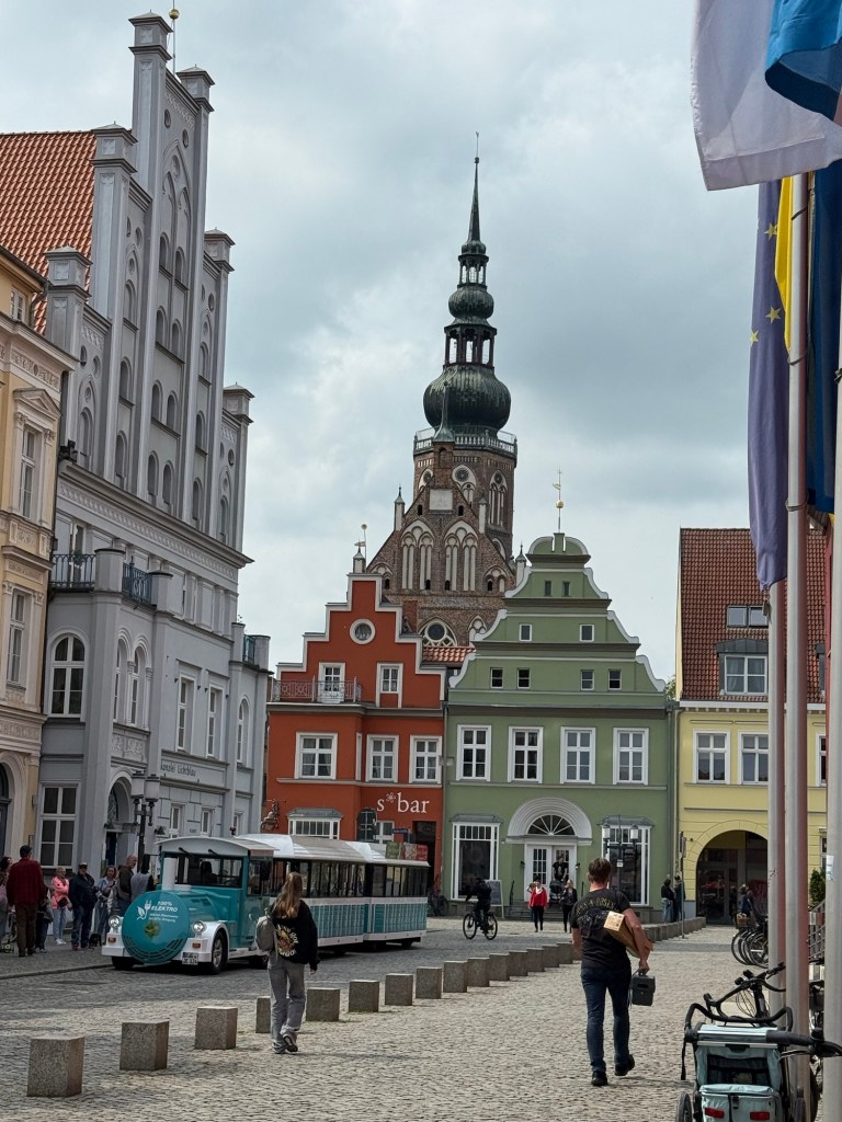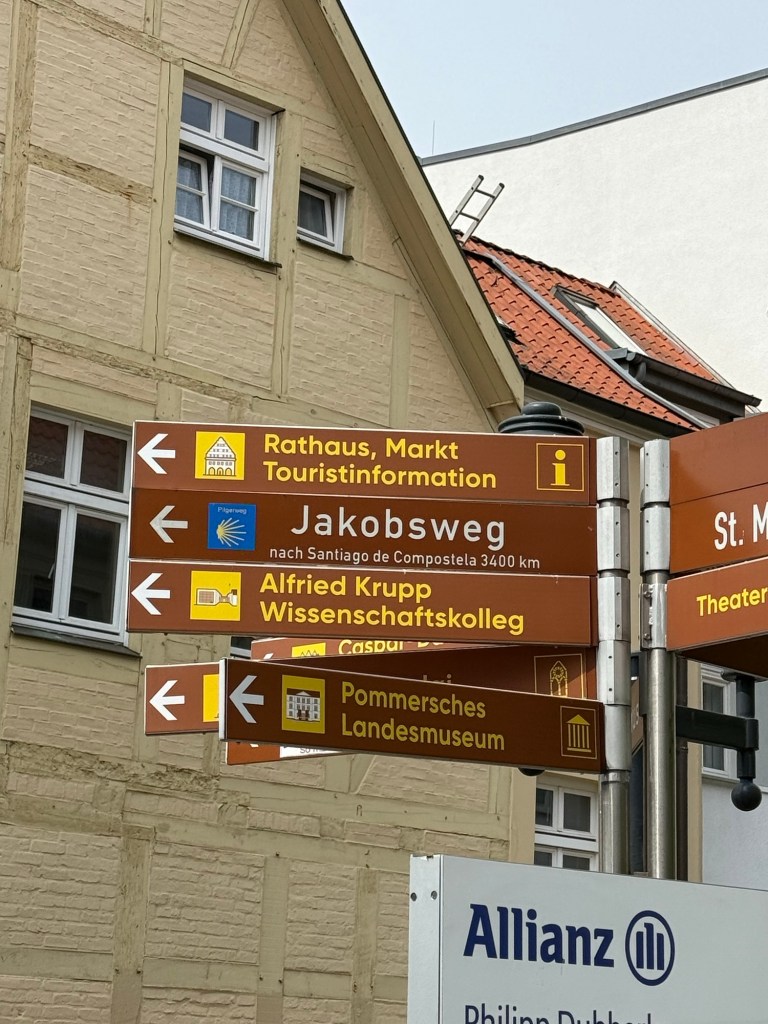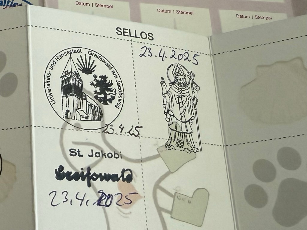 Plan für morgen ist, den Pilgerweg von der Klosterruine Eldena stadteinwärts bis zur Marienkirche zu gehen. Kurz vor Schluss noch das Carepaket aus der Packstation zocken und versuchen noch einen Stempel in der Marienkirche zu bekommen. Heute war da niemand und das Kirchenbüro hat erst morgen Nachmittag wieder geöffnet. Freitag geht’s nach Hause. Das Zugticket ist schon käuflich erworben und hoffentlich klappt alles mit der sehr kurzen Umsteigezeit unterwegs 🤔 Notfalls muss der Gatte uns irgendwo retten 🤷♀️ Oder mein Chef. Der hat letzte Woche gesagt ich bräuchte nur anrufen, dann käme mir jemand zuhilf… Was er wohl sagen würde, wenn ich ihn wirklich anrufe???