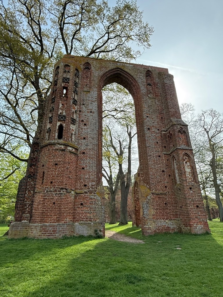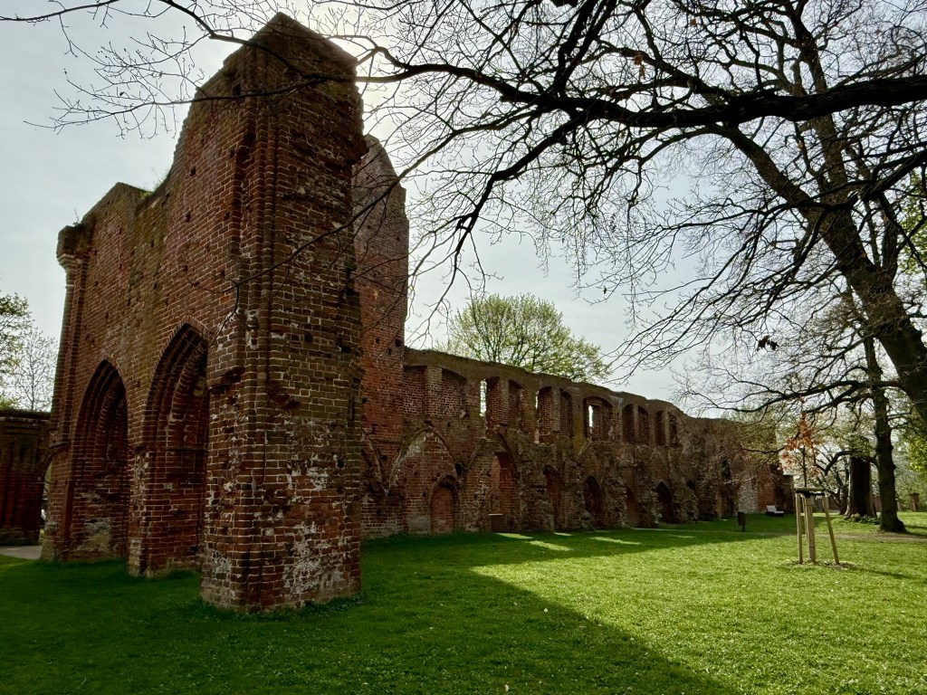 Heute haben Yuna und ich uns die Klosterruine in Eldena angesehen, die seinerzeit maßgeblich beteiligt war an der Entstehung von Greifswald. Eigenartig da so inmitten der Ruinen zu stehen und sich vorzustellen, dass da wirklich mal Leben gewesen ist. Wir hatten herrlichen Sonnenschein und ich konnte sogar schon ohne Jacke los.