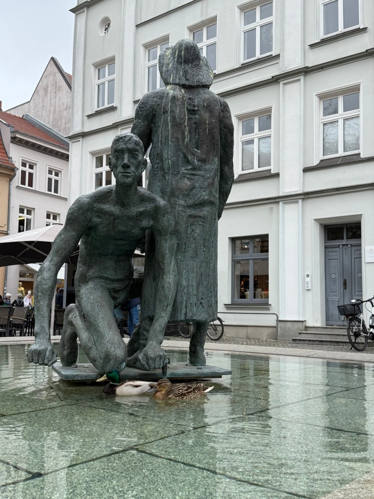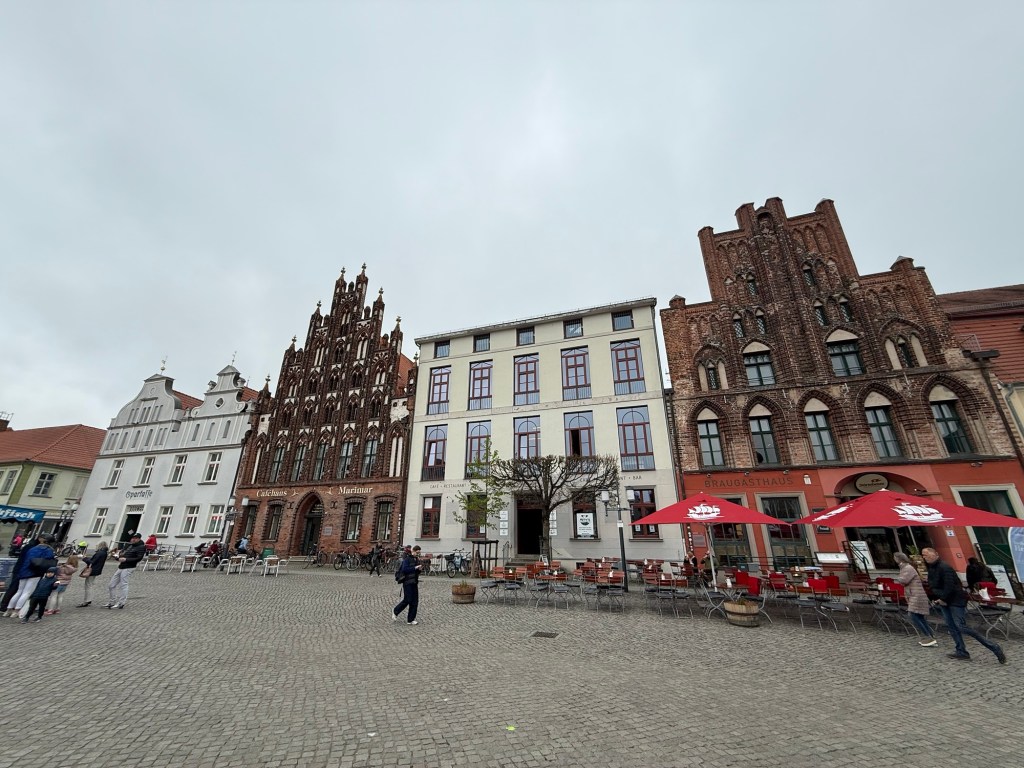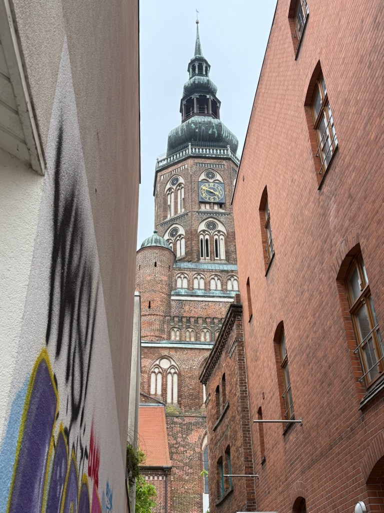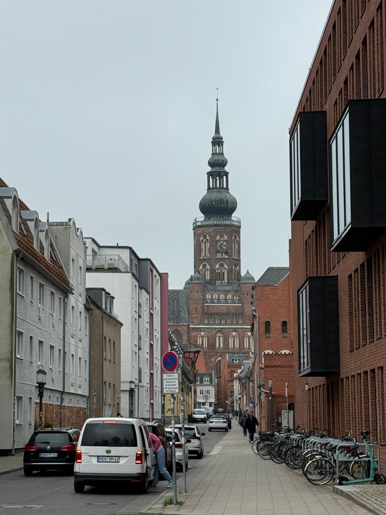 Danach sind wir noch an der Klappbrücke in Wieck gewesen. Auch ein Wahrzeichen von Greifswald. Zurück stadteinwärts über den Treidelpfad am Ryck. Vorbei an meinem alten Wohnblock, in dem mein Vater bis 2013 gelebt hat. Meine alte Schule steht auch noch. Aber rundrum ist soviel neu. Das ganze Viertel sieht anders aus und überhaupt nicht mehr wie ich es in Erinnerung hatte. Als mein Vater nach Kiel gezogen ist, waren die neuen Häuser noch nicht da und ich danach auch nicht mehr. Weiß nicht so ganz wie ich das finden soll 🤔