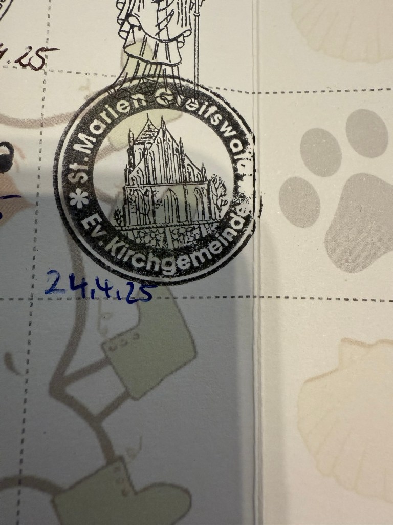 Halb 4 haben wir uns dann nochmal auf die Socken gemacht und mit großen Augen vor dem Kirchenbüro gestanden und realisiert, dass ja heute der 24.4. ist und ausnahmsweise das Büro heute von 8-11 Uhr aufhat statt wie sonst 14.30-18 Uhr 🙄 Also nochmal in die Marienkirche geschlichen und heute war da auch jemand, dem ich 2 Stempel abquatschen konnte. Mission erfüllt. Danach waren wir noch Eis essen und Hundi hat ein eigenes Pup-Cup bekommen. Hoffe das endet nicht in Durchfall heute Nacht 🙀
