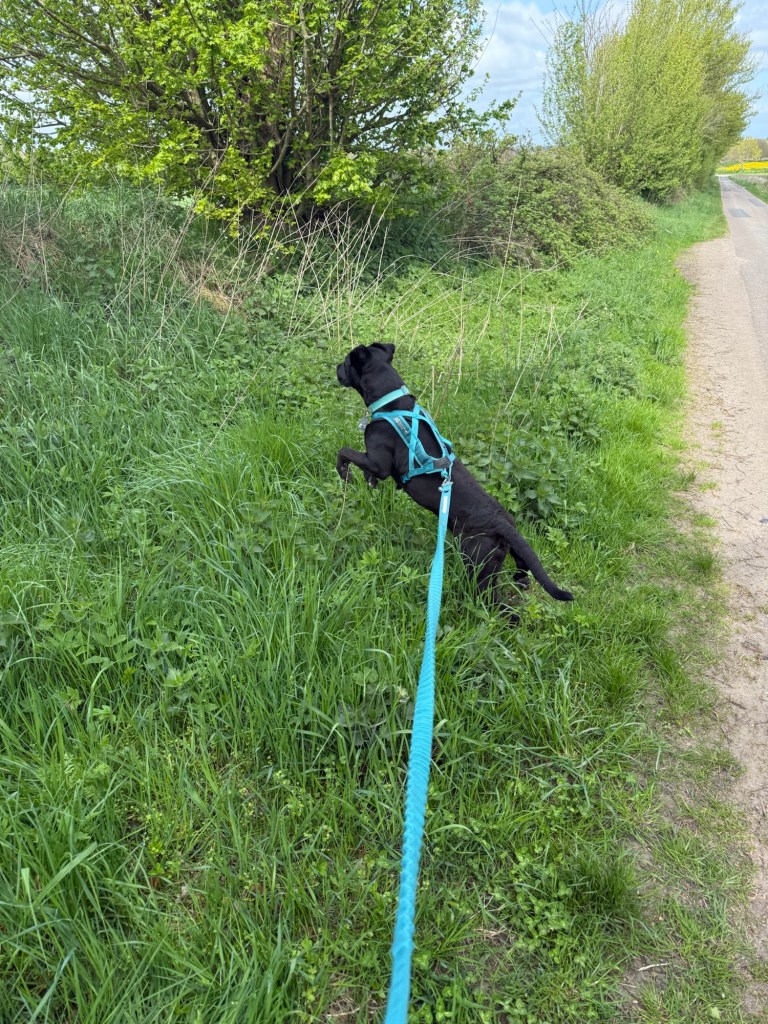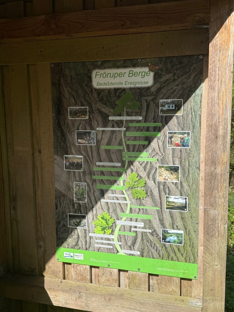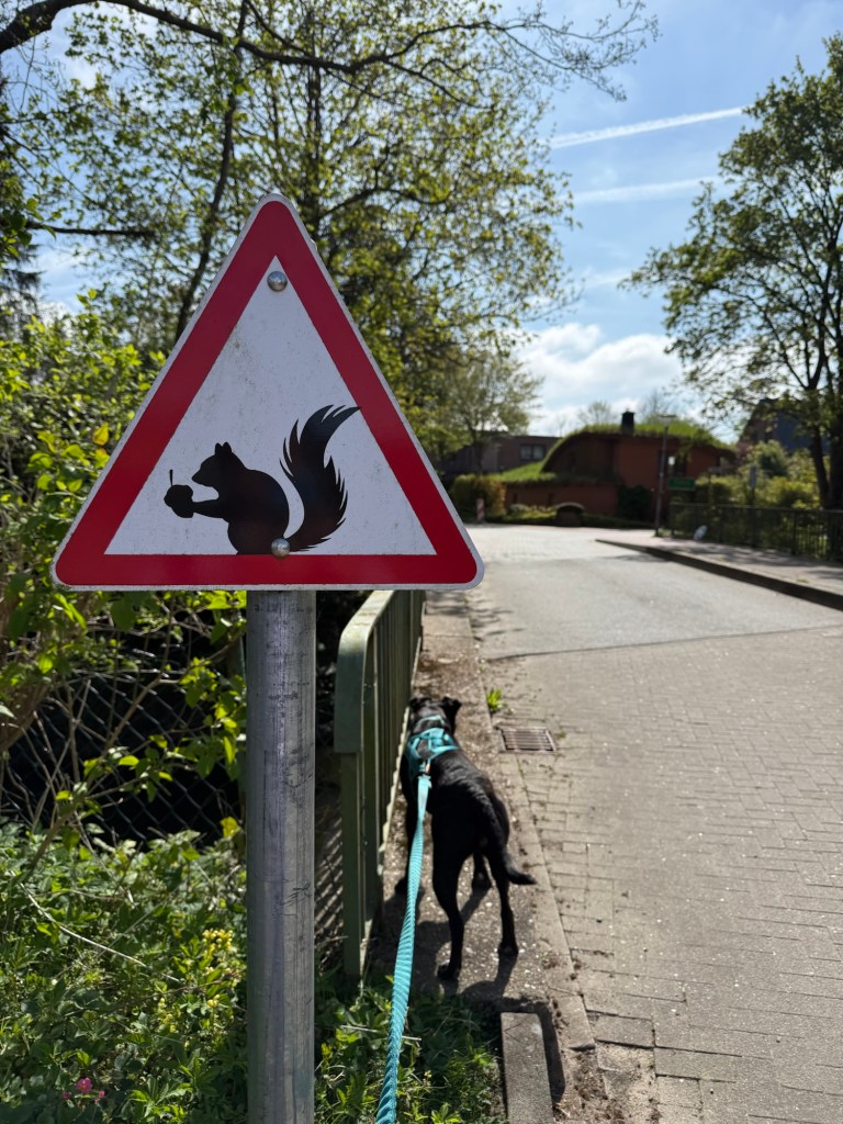 In den Fröruper Bergen wurden wir von einem Schäfer mit seiner Herde unter lautem Gezeter der Schafe und Lämmer begleitet. Während ich da so vor mich hinstaune, passe ich eine Millisekunde nicht auf und schon wälzt sich das 4- Bein in Schafscheisse. Das ganze schöne Geschirr ist mit grüner Kacke beschmiert 🤢 Und als Dank trete ich beim Weitergehen auch noch mitten in einen Fladen. Höre ein schmatzendes Geräusch und schon habe ich auch das stinkende Elend an den Schuhen. Zum Glück haben wir ja noch genug Weg vor uns. Am Ende wird wohl alles wieder ab sein 😏