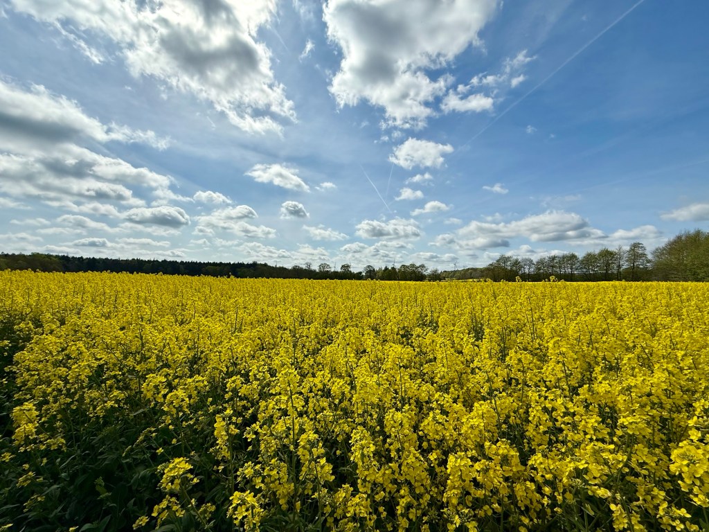 Heute sind wir größtenteils durch das Naturschutzgebiet „oberes Treenetal“ gewandert. Wie von der Wetter- App versprochen, kam kurz nach 10.30 Uhr die Sonne raus und ich konnte meine Jacke zurück in den Rucksack stopfen. Wir haben auch fast niemanden getroffen unterwegs. Sehr entspannend.