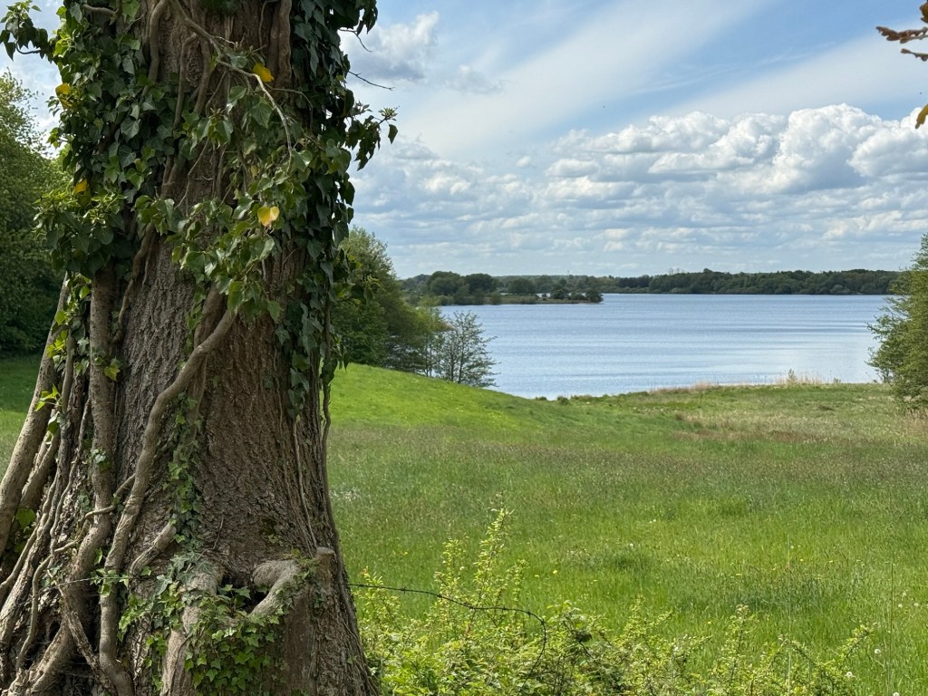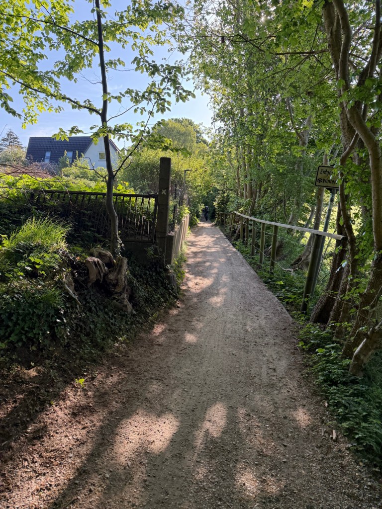 Wir wandern durch Plöns Speckgürtel. Schon nette Häuschen hier so mit Seeblick und so. Und immer schön bergauf. Ich pfeife langsam auf dem letzten Loch 🕳️ Der Hund auch.