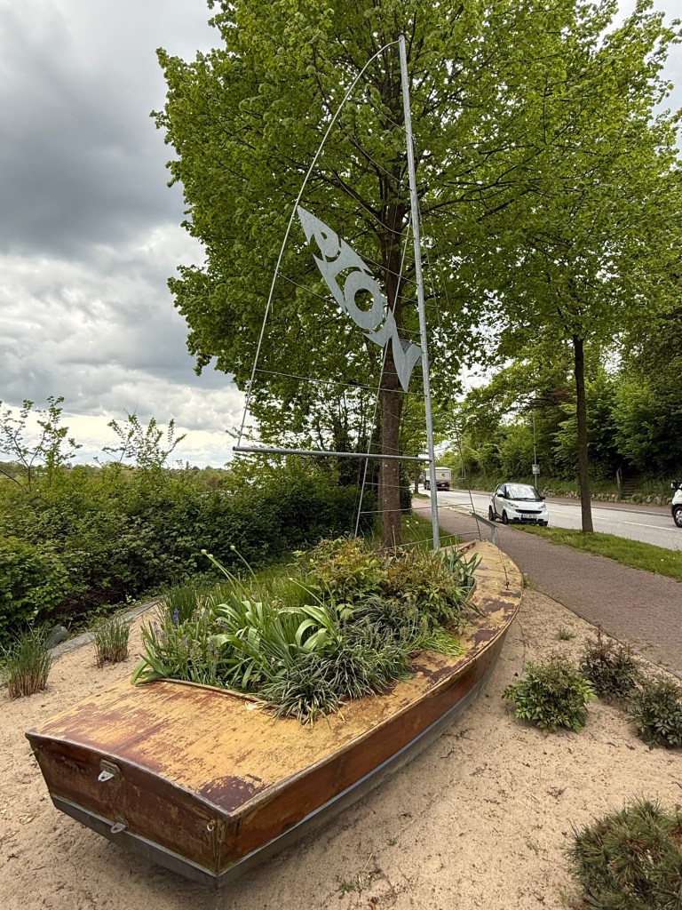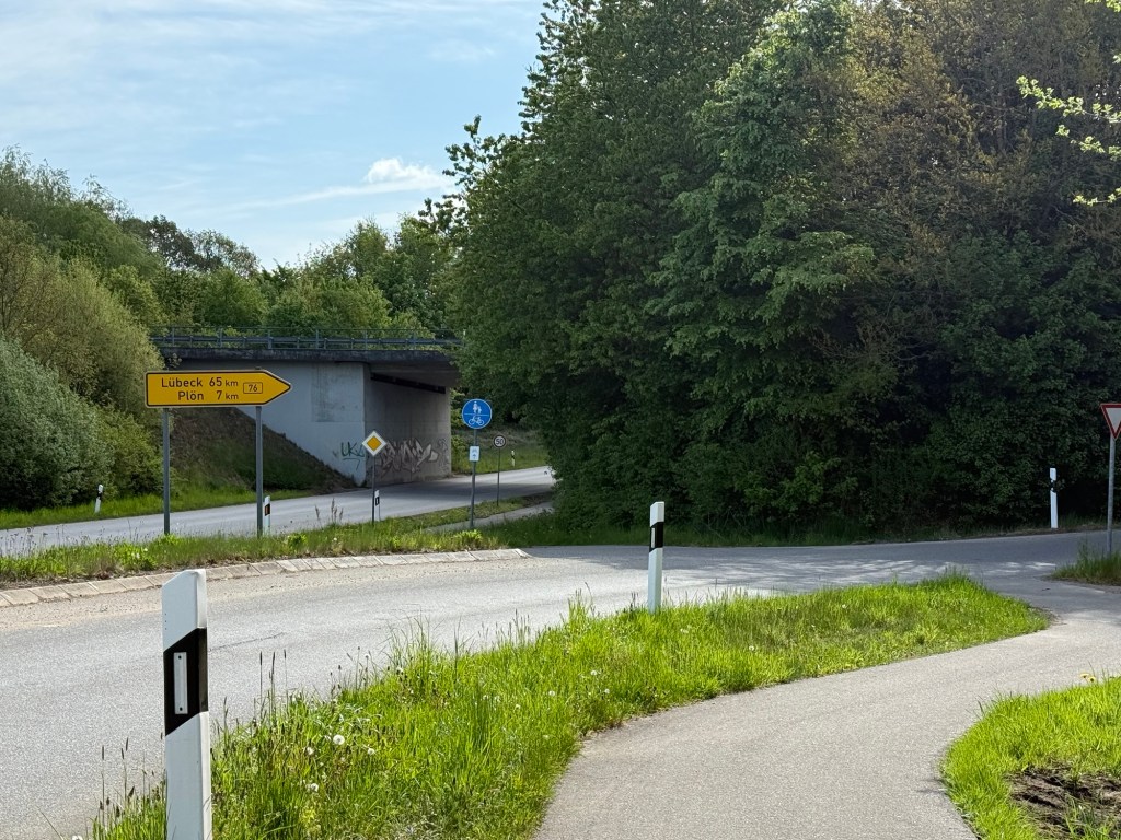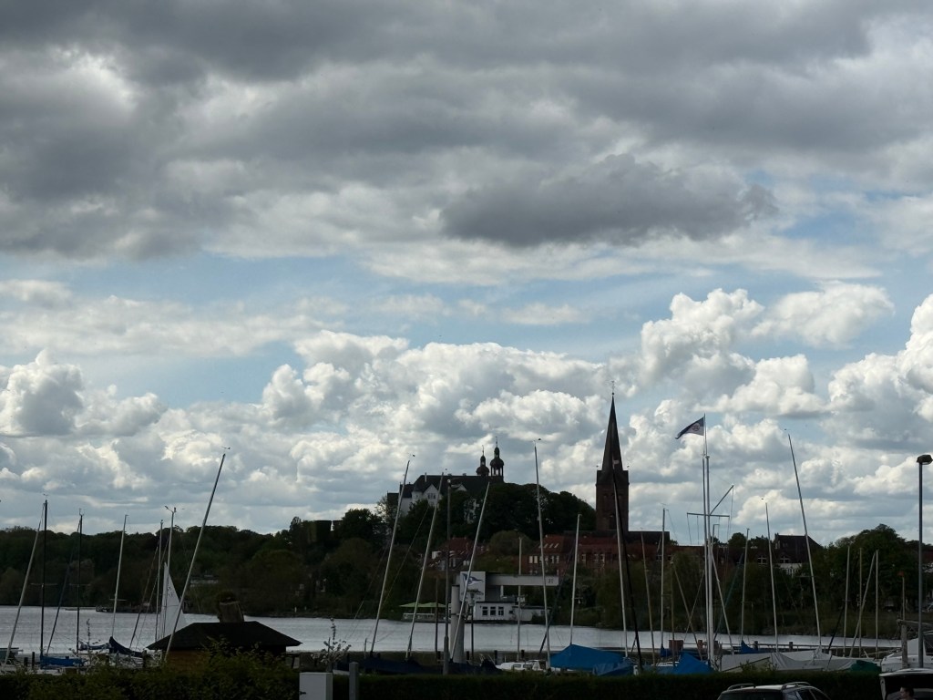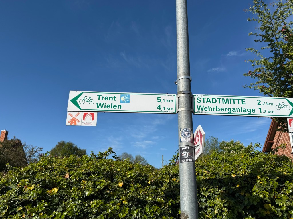 Dann kommt endlich Plön in Sicht. Zwar noch in weiter Ferne, aber immerhin. Der Himmel zieht sich zu und plötzlich sieht’s nach Regen aus 😱 Glücklicherweise sind wir aber trocken geblieben. Pünktlich um 13 Uhr sind wir am Plöner Ortsschild. 1 Std früher als geplant und trotzdem keine Minute zu früh. Das ist doch mal was.
