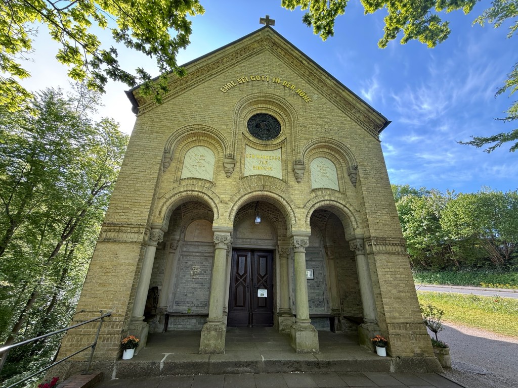 9.45 Uhr … den Pilgerstempel. Leider ist auch die Kapelle Sophienhof eine der verschlossenen Kirchen/ Kapellen aufgrund von Vandalismus. Sehr schade. Ich kann nicht verstehen warum es Menschen Freude macht Dinge zu zerstören 🤷♀️ Zum Glück habe ich in einer Ecke den Pilgerstempel erspäht und sofort in unseren Pässen verewigt. Nun können wir glücklich erstmal entspannt ein Frühstückspäuschen machen und die Füße etwas ausruhen. Der Hund spuckt mir das offerierte Apfelstück vor die Füße als ich meine Eierstulle auspacke. Als man realisiert, dass es davon nichts ab gibt, ist der Apfel dann plötzlich doch gut genug 🤷♀️ Besser als nichts denkt sie sich wohl.