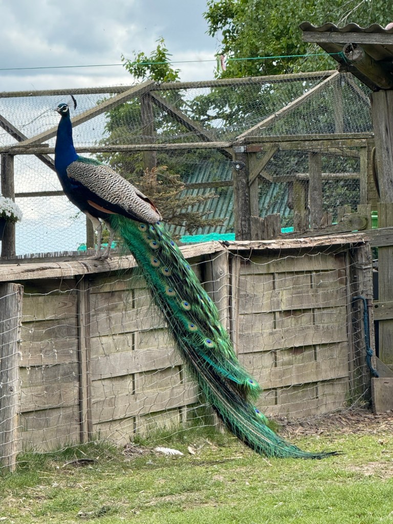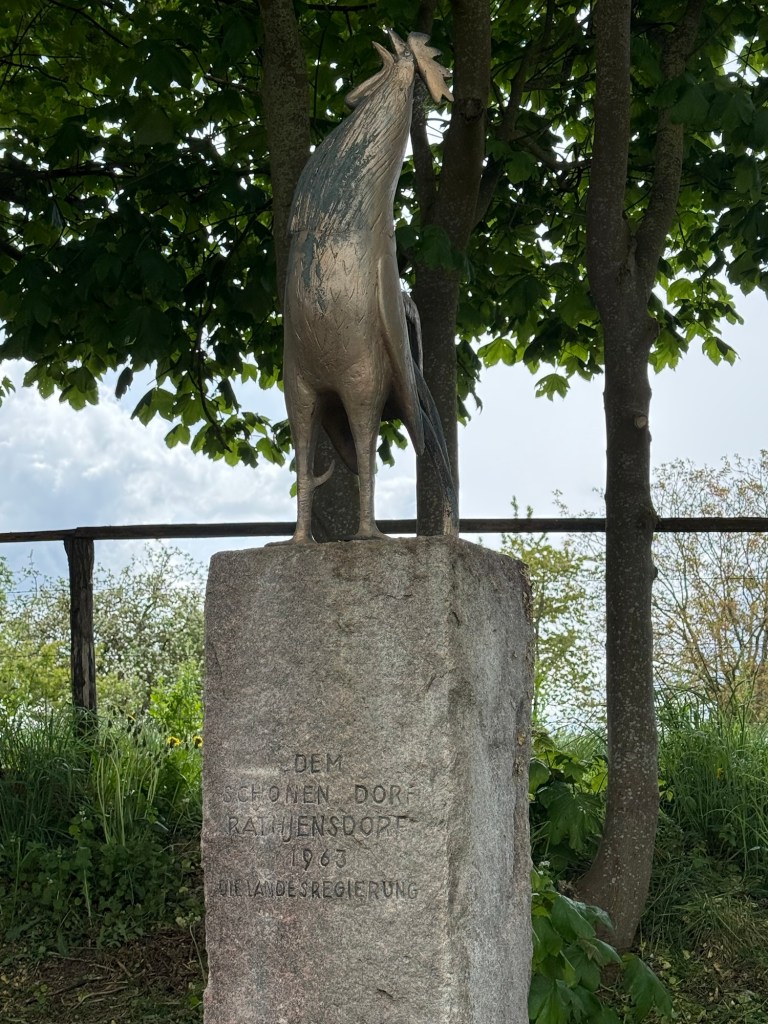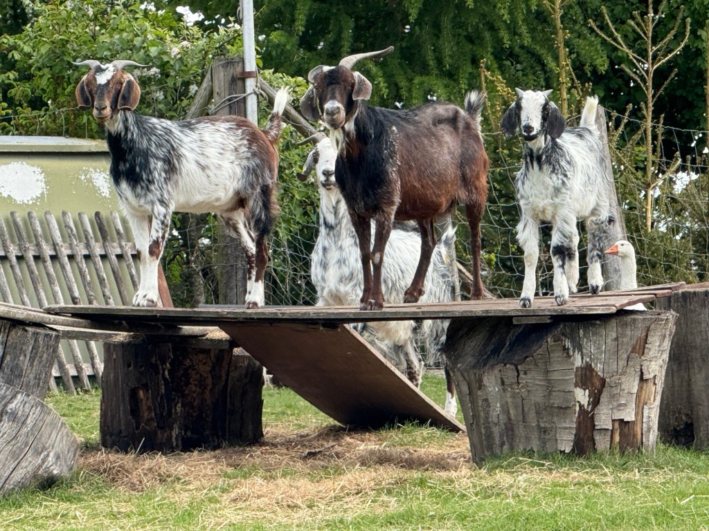 In Rathjensdorf erwerbe ich einen tollen Wanderstab und verliebe mich in kostenlose Pfauenfedern. Ließen sich leider nicht wirklich transportieren, also hab ich sie schweren Herzens zurückgelassen 😕 Die Kasse kann ich in dem kleinen Häuschen nicht finden und trage dem älteren Herrn die Kohle zur Haustür, wo eine kleine bellende Trethupe sich mit Yuna anlegen will. Die Ziegen und Hängebauchschweinchen sind an Yunas Leckerlis interessiert, aber sie will einfach nichts abgeben.