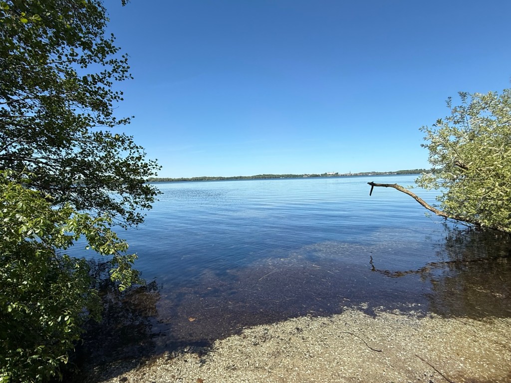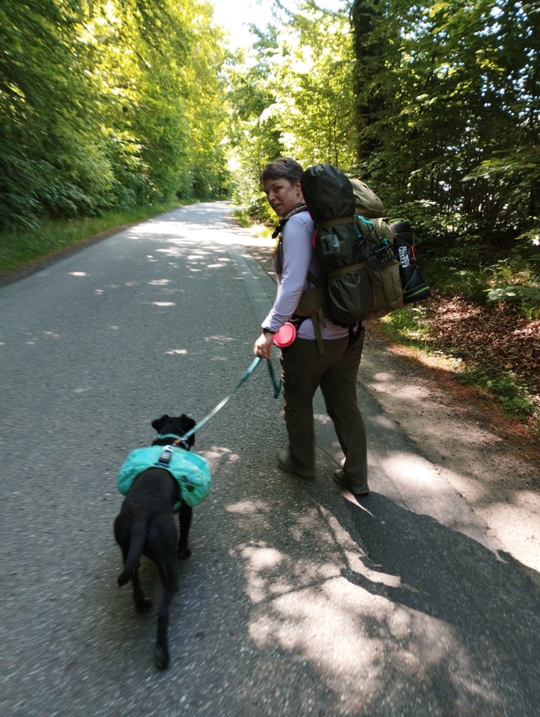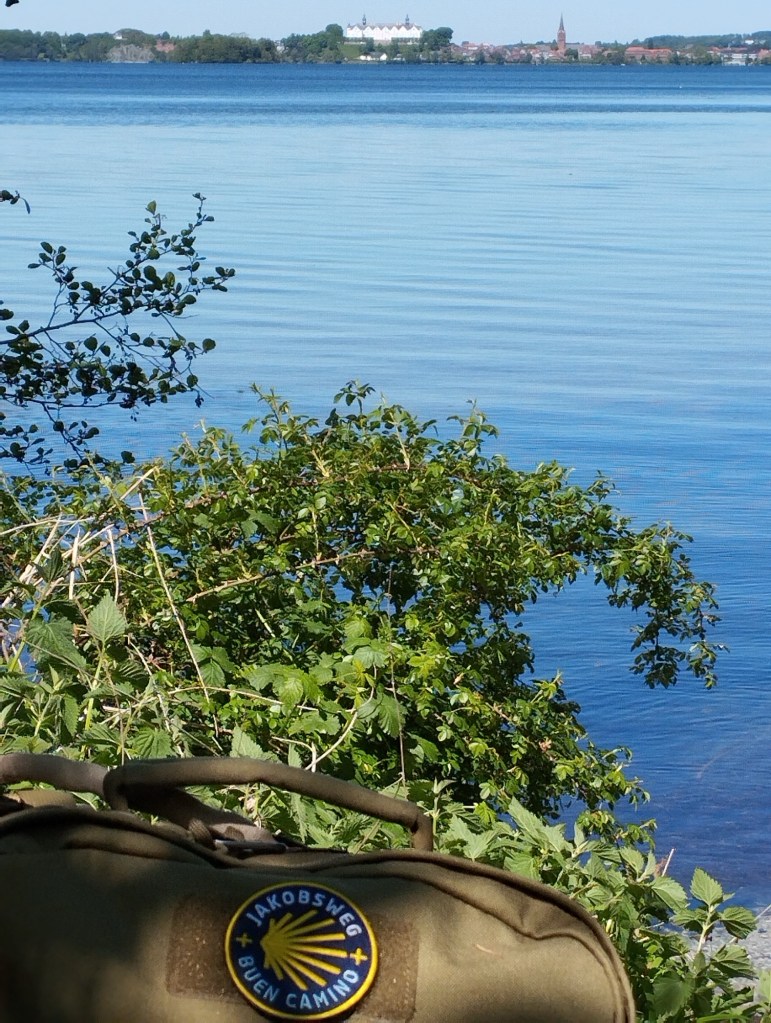 Bis Bosau war es relativ anstrengend. Nicht aus geografischen Gründen, sondern weil der Pilgerweg auch gleichzeitig der Radweg nach Bosau ist. Entsprechend viel war auch los. Wir haben noch eine andere Wanderin getroffen, die unbedingt Fotos von uns machen wollte, dafür bekam sie von mir ein schönes vom Plöner Schloss mit Kirche und See. So ergänzt man sich unterwegs 😊 Ab Bosau war es dann endlich ruhig und wir hatten sämtliche Straßen und Wege wieder für uns allein. Sehr entspannend. Weder Yuna noch ich können mit diesen ständigen Menschenmassen um uns rum gut umgehen.