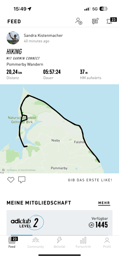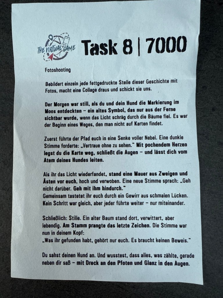 20 km gelaufen um alle 10 Aufgaben lösen zu dürfen. 1 haben wir Naturschutzgebiet-bedingt nicht gemacht (Nr. 9, das Wiesenmakramee), ich kann ja nicht einfach irgendwo Gräser abrupfen und Task 9, The Game Obedience), habe ich vergessen. Fiel mir erst beim Auspacken des Rucksacks auf und wären einfache 8000 Pkt gewesen. Mist 🤷♀️