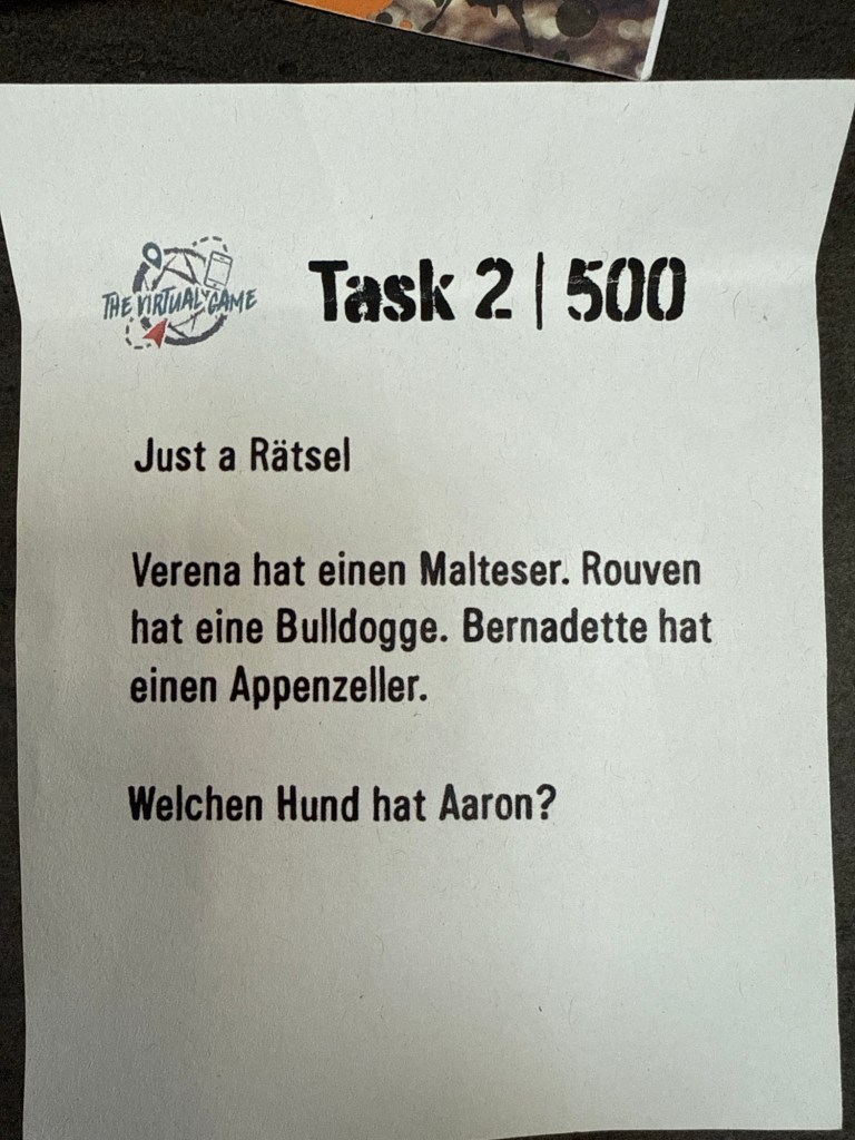 Fail Task 2, Just a Rätsel… Das war es in der Tat. Was weiß ich denn was Aaron für einen Hund hat? Meine Antwort war keinen, weil er ne Hundehaarallergie hat. War natürlich falsch 😑 So komisch um die Ecke kann ich nicht denken 🤷♀️