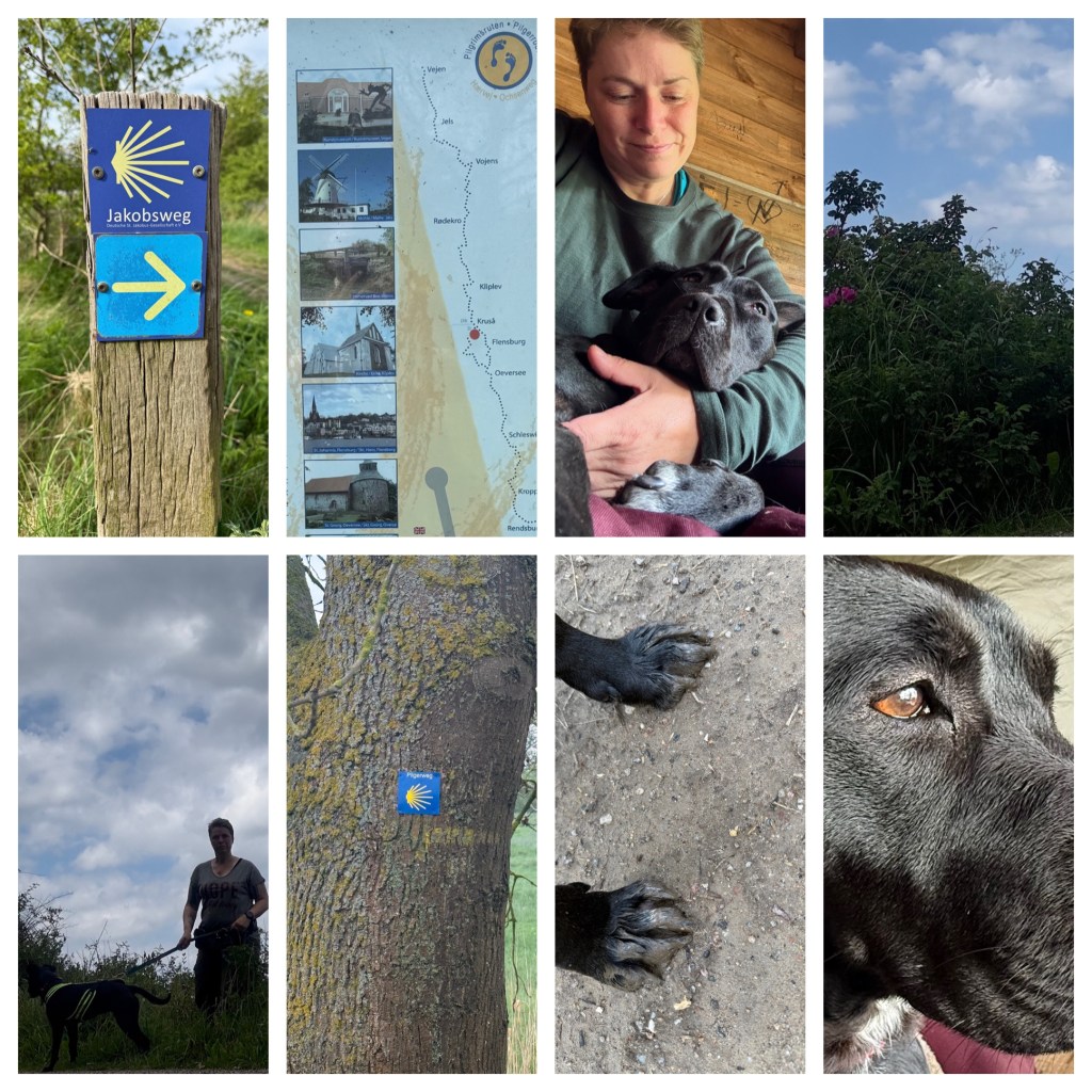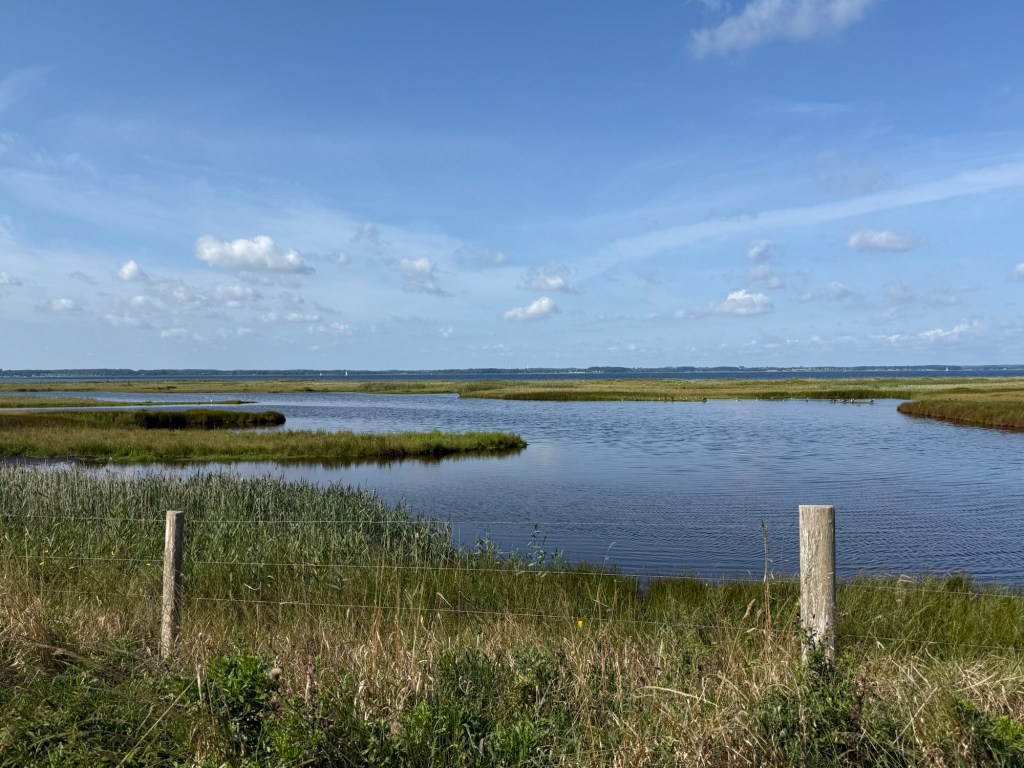 Ansonsten war der Tag an sich sehr warm. Den Sonnenbrand gab’s gratis dazu und das Hundekind hatte zwischendurch doch arg zu kämpfen mit der Mittagshitze. In weiser Voraussicht hatte ich gestern ja 2 l Wasser statt nur 1 l eingekauft und mitgeschleppt. Das hat sich heute echt bezahlt gemacht und wir haben auch bis auf den letzten Milliliter alles ausgetrunken. Für morgen habe ich die gleiche Menge im Rucksack. Zum Glück sind wir am Wasser unterwegs und hier geht die meiste Zeit zumindest ein bisschen Wind 💨, sodass es nicht permanent so übermäßig heiß ist.