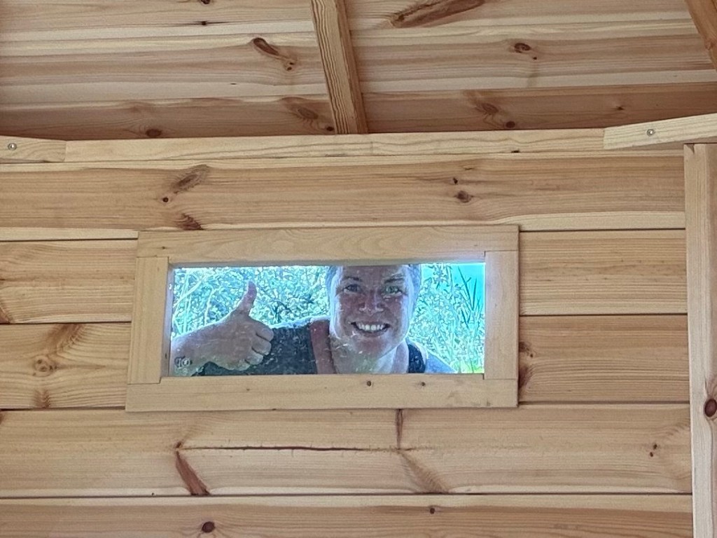 Immerhin 3 Aufgaben haben wir bestanden, Task 9, Let‘s have a tea, einfaches Ding für einen Mantrailer. Mit einem eingeweichten Teebeutel eine 100 m lange Schleppe legen mit 2 Abzweigungen und am Ende findet der Hund den gatschigen Teebeutel. Task 10, Gametomime, pantomimisch einen berühmten Film in 1 Foto nachstellen und Task 3, die Aufgabe aus dem Zoom, innerhalb von 5 min ein Foto machen, wenn man durch ein echtes Fenster guckt und das per WhatsApp an Camp Canis schicken. Zum Glück hatte ich eine sehr günstige Stelle für meine Mittagspause und den damit verbundenen Zoom gefunden und da war sage und schreibe ein Fenster in der Wetterschutzhütte.